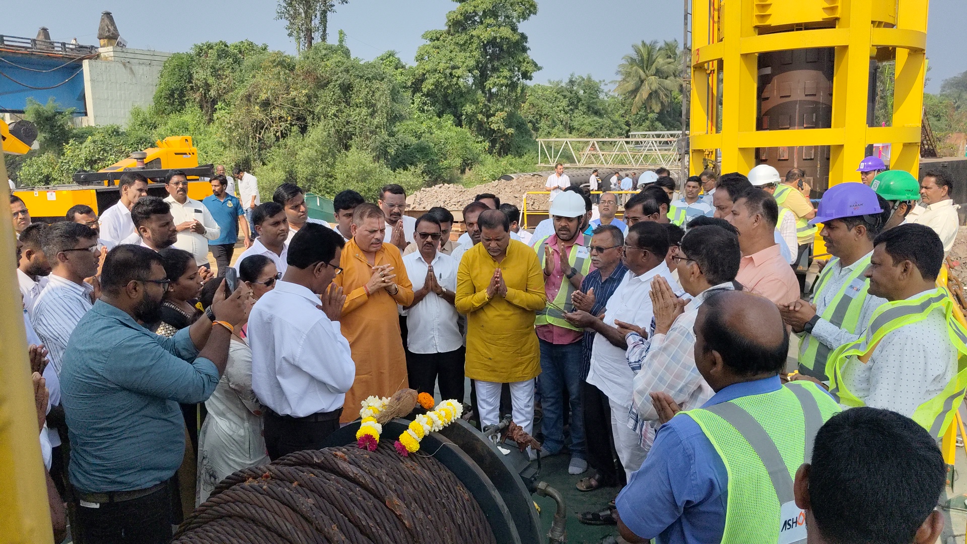 रेवदंडा कुंडलिका समुद्र खाडी किनारी पुलाचे उजव्या बाजूस गुरूवार दि. 27 नोव्हेबर रोजी सकाळी साडेदहा वाजता नव्या पुलाचे बांधकामाचे भुमिपुजन कार्यक्रम अशोका बिल्डकॉन लि. या कंस्ट्रशन कंपनीव्दारे आयोजीत करण्यात आले होते. या भुमिपुजन कार्यक्रमास अलिबाग-मुरूडचे आमदार महेंद्र दळवी यांना आमंत्रीत करण्यात आले होते. यावेळी त्याचे समवेत शिवसेना तालुका प्रमुख अनंत गोंधळी, शिवसेना जेष्ठ कार्यकर्ते सचिन राउळ, नारायण मुंबईकर, रेवदंडा ग्रा.प.सरपंच प्रफुल्ल मोरे, मुरूड उपतालुका प्रमुख, भगिरथ पाटील, मुरूड युवासेना उपतालुका प्रमुख विकी वेगस, दर्यातंरग मच्छीमार सोसायटी रेवदंडा चेअरमन सुधाकर गुंडा, सदस्य गणेश बाजी,सदस्य महेश पाटील, सि.एम. ठाकूर, सेक्रेटरी महेंद्र म्हात्रे, समन्वयक सुदेश माळी, शिवसेना रेवदंडा महिला अध्यक्षा शलाका राउत, चौल महिला अध्यक्षा ज्योती मुंबईकर,स्वप्निल शेणवईकर,ग्रा.प.सदस्य सुराराम माळी, किशोर मानकर, अशोक गुरव, शरद दांडेकर, केदार खेोत, सुभाष शेळके, दत्ता शेळके, भुषण घरत, सुधीर चेरकर आदी शिवसेना पदाधिकारी व कार्यकर्ते तसेच ग्रामस्थ तसेच अशोक बिल्डकॉन लि. कंस्ट्रशन कंपनीचे वतीने प्रोजेक्ट इन्चार्ज सुयश सोनावणे, प्रोजेक्ट डायरेक्टर कौशल सिंग, प्रोजेक्ट मॅनेजर प्रदीप सिंग, ॲडमिनिस्ट्रेशन हेड मोहित तिवारी यांची प्रमुख उपस्थिती होती.