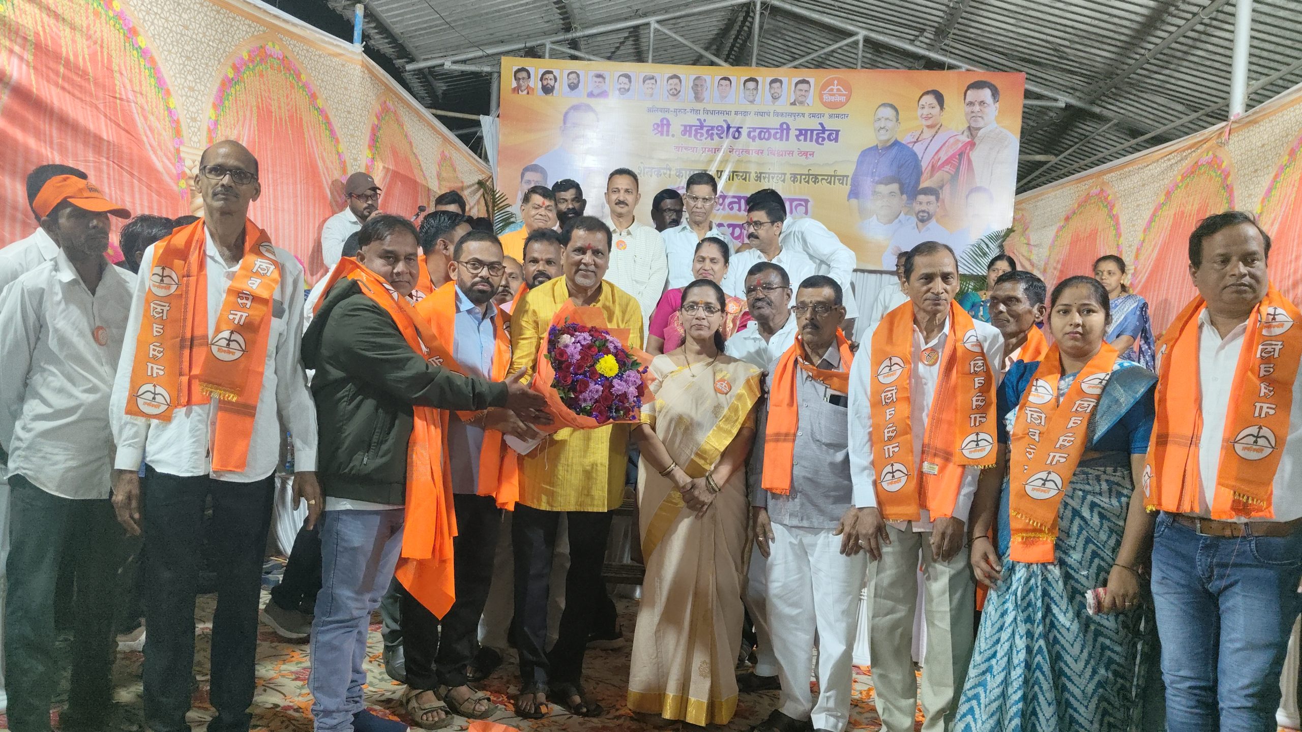 या पक्ष्ा प्रवेश कार्यक्रमांत रामराज विभागातील शेकापक्षाचे सुभाषशेठ वागळे, त्यांची पत्नी मनिषा वागळे, मुलगा सोहम वागळे, मल्याण येथील शेकापक्षाचे प्रमुख कार्यकर्ते सुभाष पाटील, नवखार येथील नितिन पालकर, अर्चना पालकर,गजानन दिवकर, अभिषेक म्हात्रे, कैलास वेटकोळी,गणेश धुमाळ,खेळया वारगुंडे, योगेश काष्टे,पंढरीनाथ भांडविलकर, निलेश भांडविलकर, रवि सावंत, संदिप कदम, प्रमोद पुनकर, प्रदिप कदम, समीर राणे, चंद्रकांत सावंत, तसेच रामराज कोळीवाडा, रामराज मराठी आळी,उमटे डुंगी, महानवाडी, पिंपळवाडी, खैरवाडी, निर्मिर्डे, निवासवाडी, जांभूळवाडी, बापळे, नांगरवाडी, नवघर, रायशेत, राजेवाडी, येथील मोठया संख्येने ग्रामस्थ व महिला यांनी शिवसेना पक्षात प्रवेश केला. यावेळी रामराजचे सुभाषशेठ वागळे, मनिषा वागळे, सोहम वागळे व मल्याणचे सुभाष पाटील आदीचे शिवसेना पक्षात आमदार महेंद्र दळवी यांनी पुष्पगूच्छ प्रदान करून व भगवी शाल परिधान करून केले. या पक्ष प्रवेश माजी जि.प.सदस्य बाळाशेठ तेलंगे, उपतालुका प्रमुख अरूण भगत, संदेश पालकर, युवासेना प्रमुख अजय गायकर, आदीच्या प्रयत्नातून झाला.